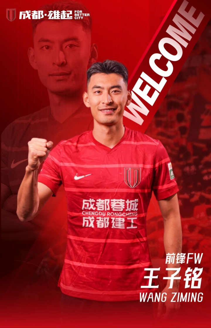 欢迎王子铭来到成都,加入成都蓉城的大家庭!你的到来将为队伍注入新的活力与力量,期待你与我们一起并肩作战,共同书写新的篇章!