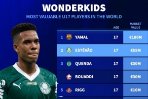 德转U17身价榜:亚马尔1.8亿断崖领跑,切尔西预订埃斯特旺等多人