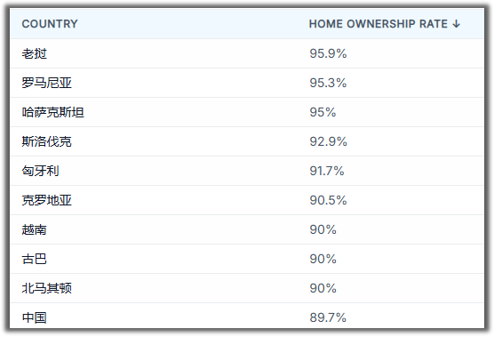与之相对的是,美国、法国、德国、日本、韩国等等发达国家,拥房率却普遍低于70%: