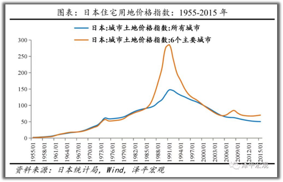 1992年到2000年间,日本六大主要城市住宅用地价格下跌55%,中小城市也跌了19.4%。
